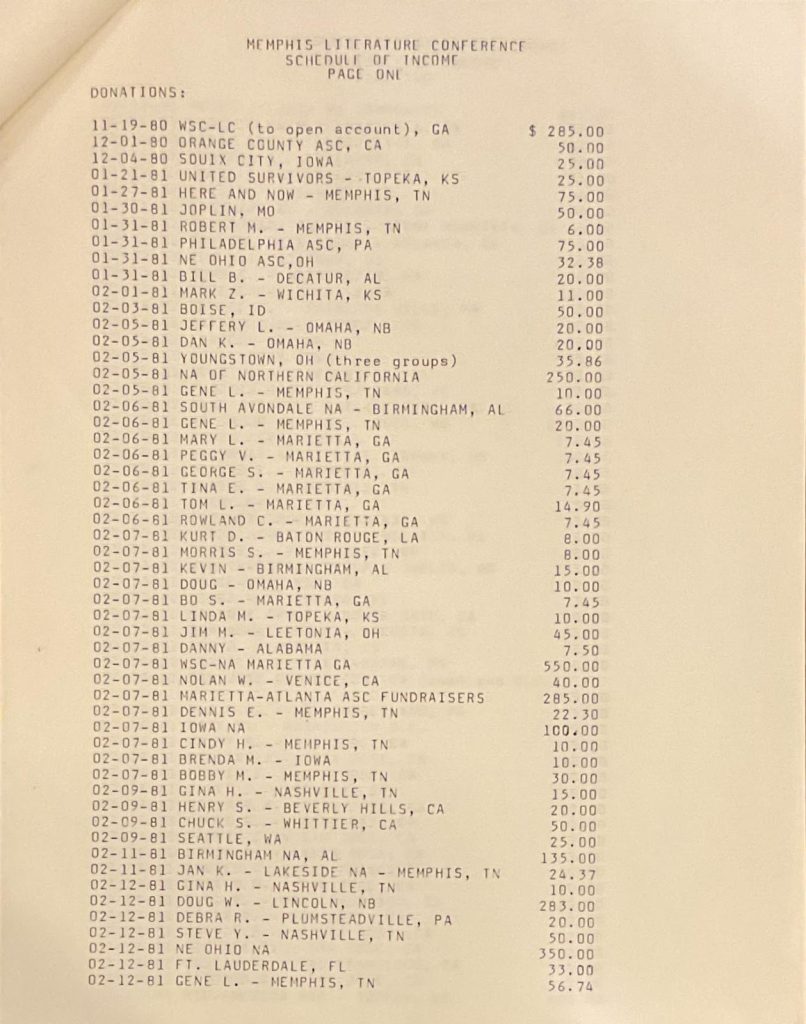 Despite the Herculean efforts of the Literature Committee, the book would not come to fruition in June 1981. It would require further review, input, and revisions over three more World Literature Conferences (a 4th would be required for personal stories). But the service that produced the Memphis Review Form was significant for this giant leap forward towards NA having its first book length publication.